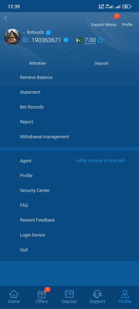 - Go to the Wallet/Deposit Section: Tap on the “Wallet” or “Deposit” option from the home screen.