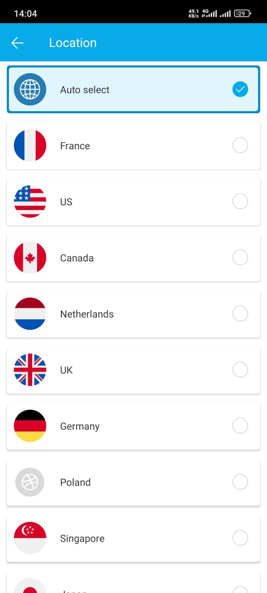 4. Launch the App – VPN server, choose it (60+ countries available.
